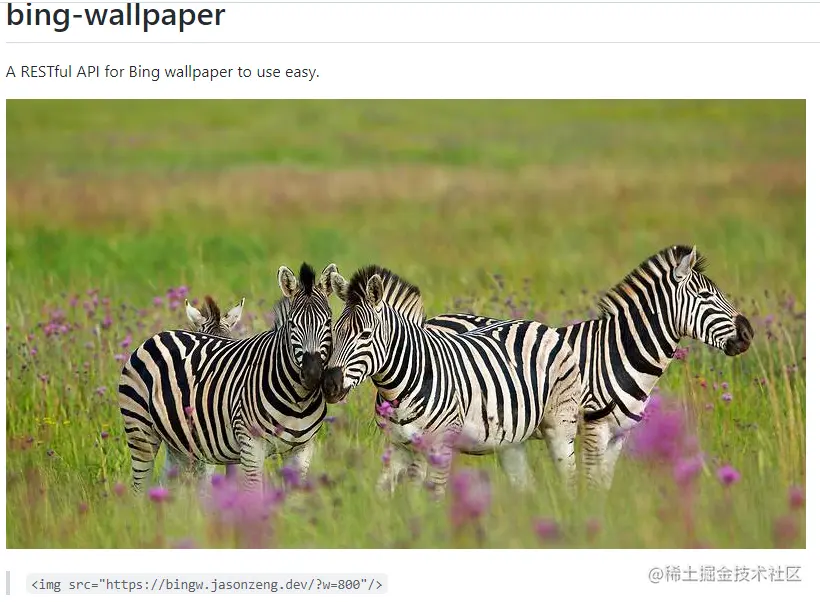 我们这里使用一个开源在 GitHub 上的必应壁纸 API 作为壁纸的来源