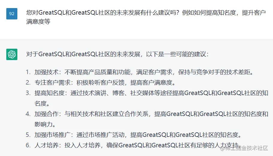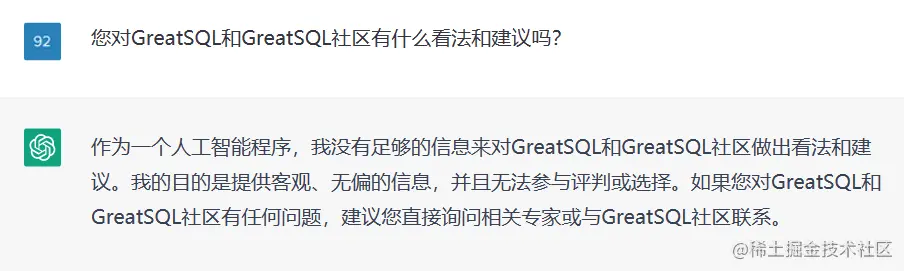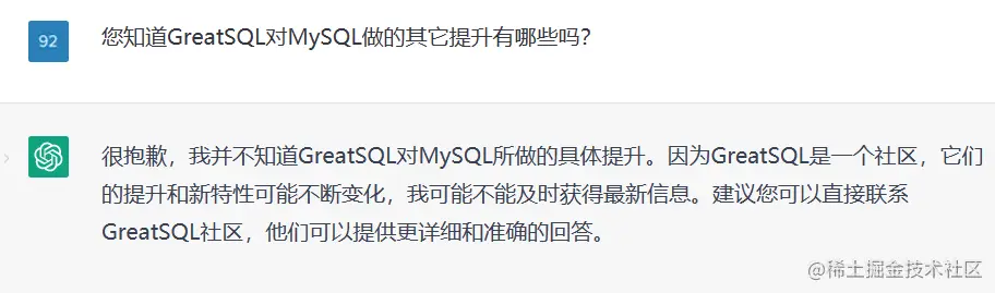 ChatGPT对GreatSQL及社区的看法