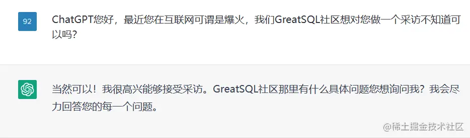 Q:ChatGPT您好,最近您在互联网可谓是爆火,我们GreatSQL社区想对您做一个采访不知道可以吗?