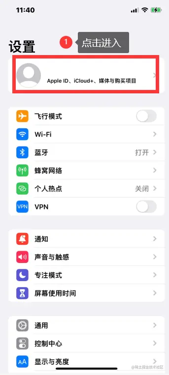 **步骤1:**打开【设置】,点击最上方的【个人中心】。