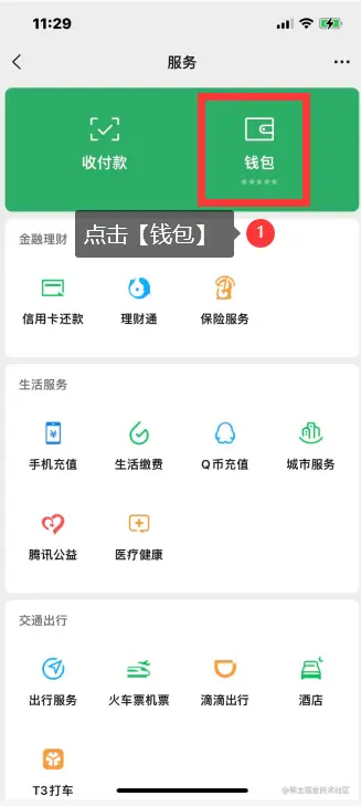 **步骤2:**点击【钱包】,进入钱包界面。
