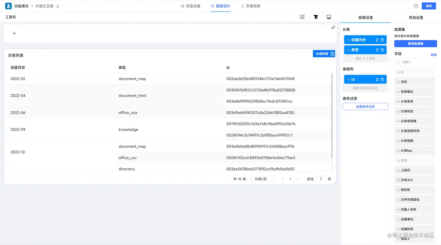 操作,仅仅是将对应组件拖入画布,在配置面板中完成对应功能的配置,操作的复杂度与excel的配置类似,简单、直观,所见即所得。