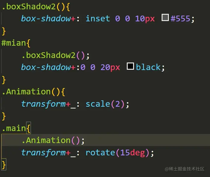 从表面看来,extend与方法最大的差别,就是 extend 是同个选择器共用同一个声明,而 方法 是使用自己的声