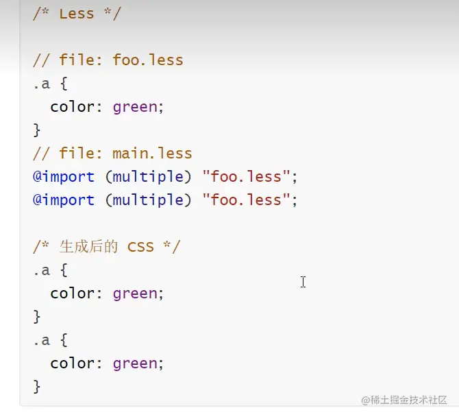 @import语句的默认行为。这表明相同的文件只会被导入一次,而随后的导入文件的重复代码都不会解析。