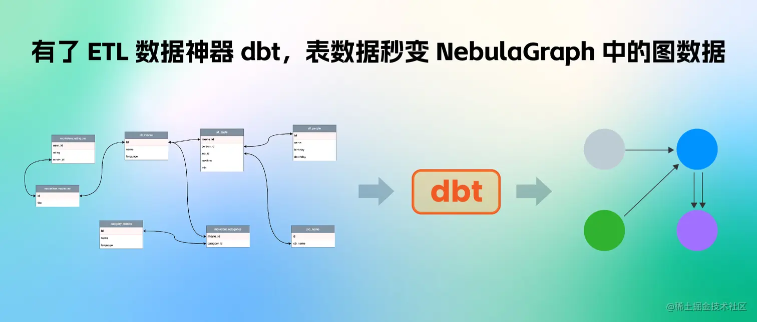 如果你装好某款数据库产品,比如:分布式图数据库 NebulaGrpah,跃跃欲试的第一步是不是就让它干活搞数据呢?好的,现在问题来了,如何把相对原始的数据处理、建模并导入 NebulaGraph 呢?本文是一个端到端的示例演示,从多数据源聚合数据,清理、利用 dbt 转换成 NebulaGraph 建模的属性图点边记录,最后导入成图谱的全流程。