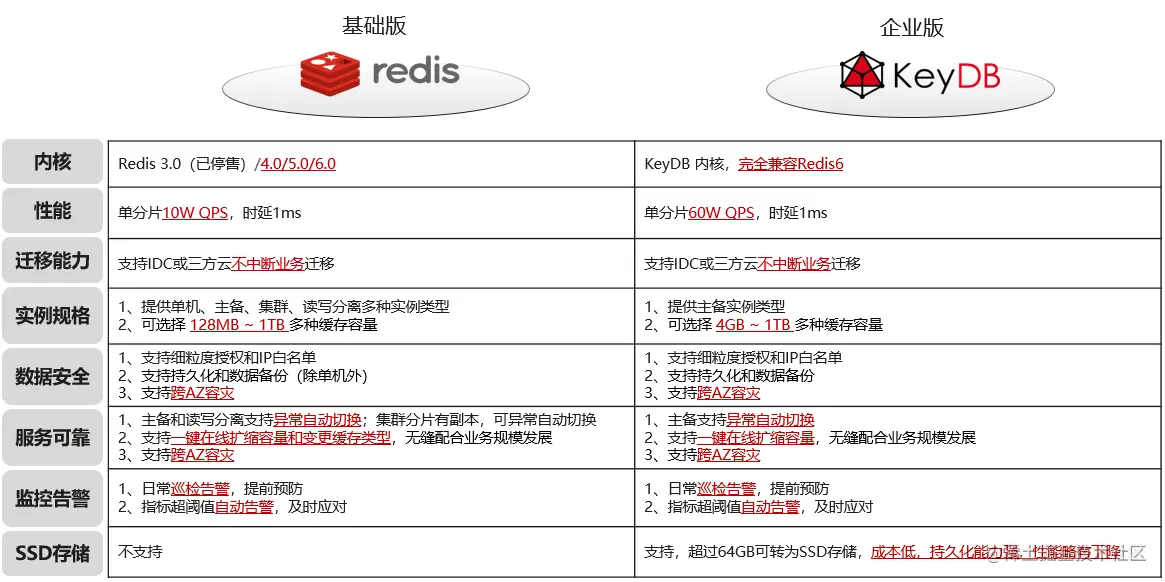 - KeyDB的性能比Redis高出5倍,DCS企业版超出业界30%性能,达到40W QPS
