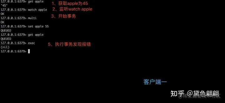 watch会在事物开始前盯住一个或多个关键变量,当服务器收到exec指令要顺序执行缓存中的事物队列时,redis会检查关键变量自watch后是否被修改3. WATCH 只会在数据被其他客户端抢先修改了的情况下通知执行命令的这个客户端(通过 WatchError 异常)但不会阻止其他客户端对数据的修改