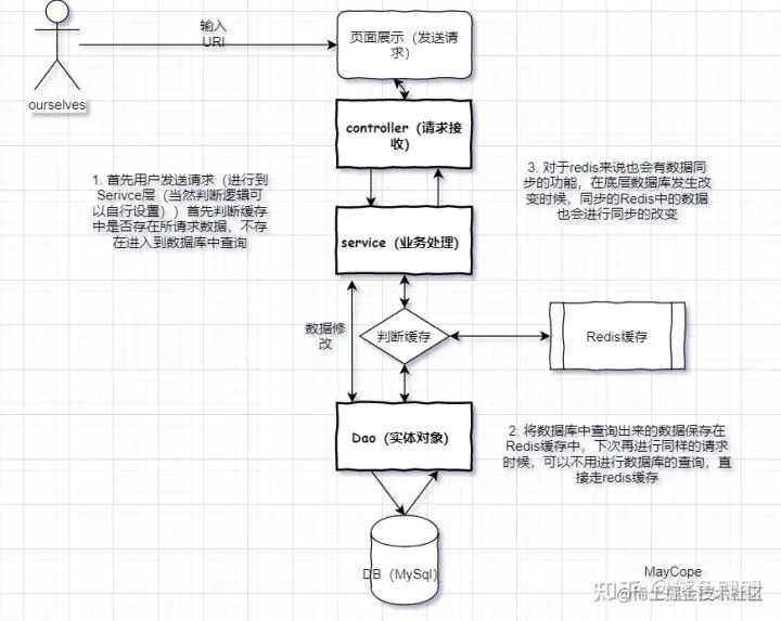 对于Redis而言,主要就是读取速度快,而且数据类型丰富,所以就可以使用Redis来做缓存,主要过程见下图:这个时候,在下一次缓存还没过期时间内再此进行同样的请求就可以减少检索的时间,提高访问的速度。