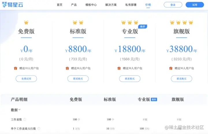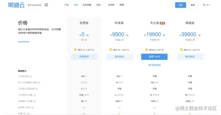 他们的官网只有这可怜的三张图。明道云产品特性的介绍页面非常丰富,可以自行逐项对比。