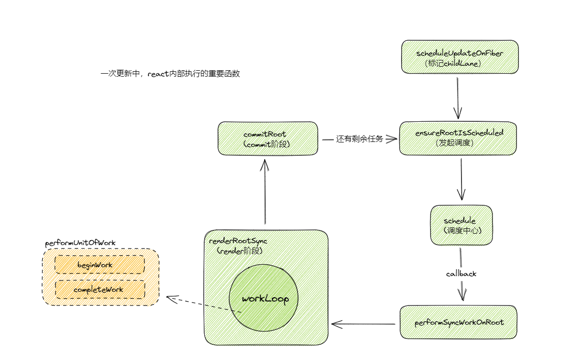 - schedule调度中心执行回调callback后,执行performSyncWorkOnRoot函数,开始真正的渲染