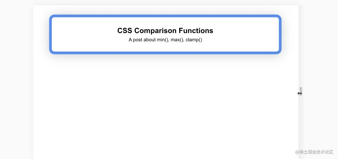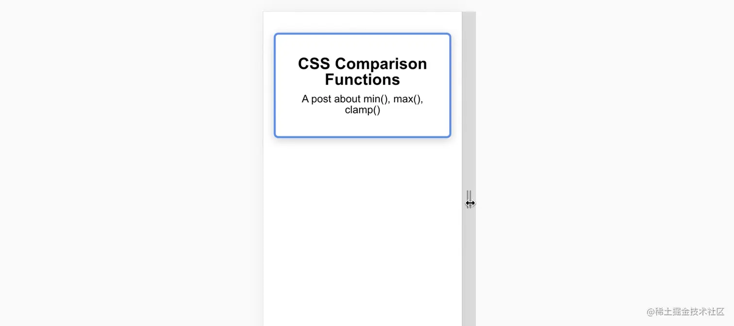 在这里使用clamp() 就非常完美,因为它可以确保使用的字体大小易于访问和阅读。如果要使用 min() 设置最大字体,就无法在小视口中控制字体。