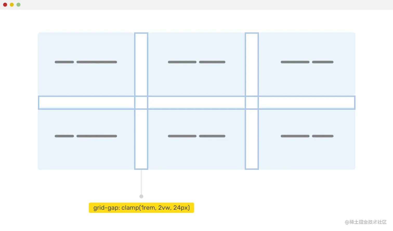 当使用 CSS Grid 布局时设置网格间隙,并且希望为移动视口缩小间隙。就可以使用 clamp():