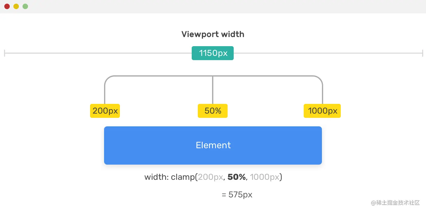 那 clamp() 是如何计算的呢?当 clamp() 用作值时,它等同于使用max()和min()函数: