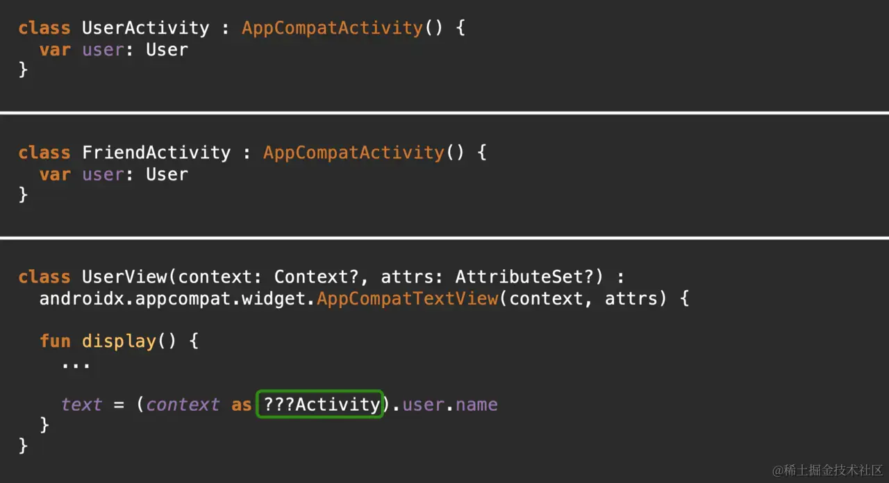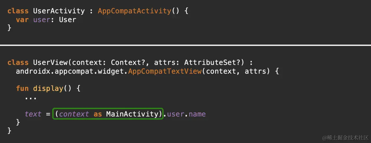 这不只是一个「美观」的差别,依赖注入可以让你的程序更加灵活,比如如果你的 View 可以在多个不同的 Activity 里显示,那你在 View 里面要怎么强转?你要转成谁?