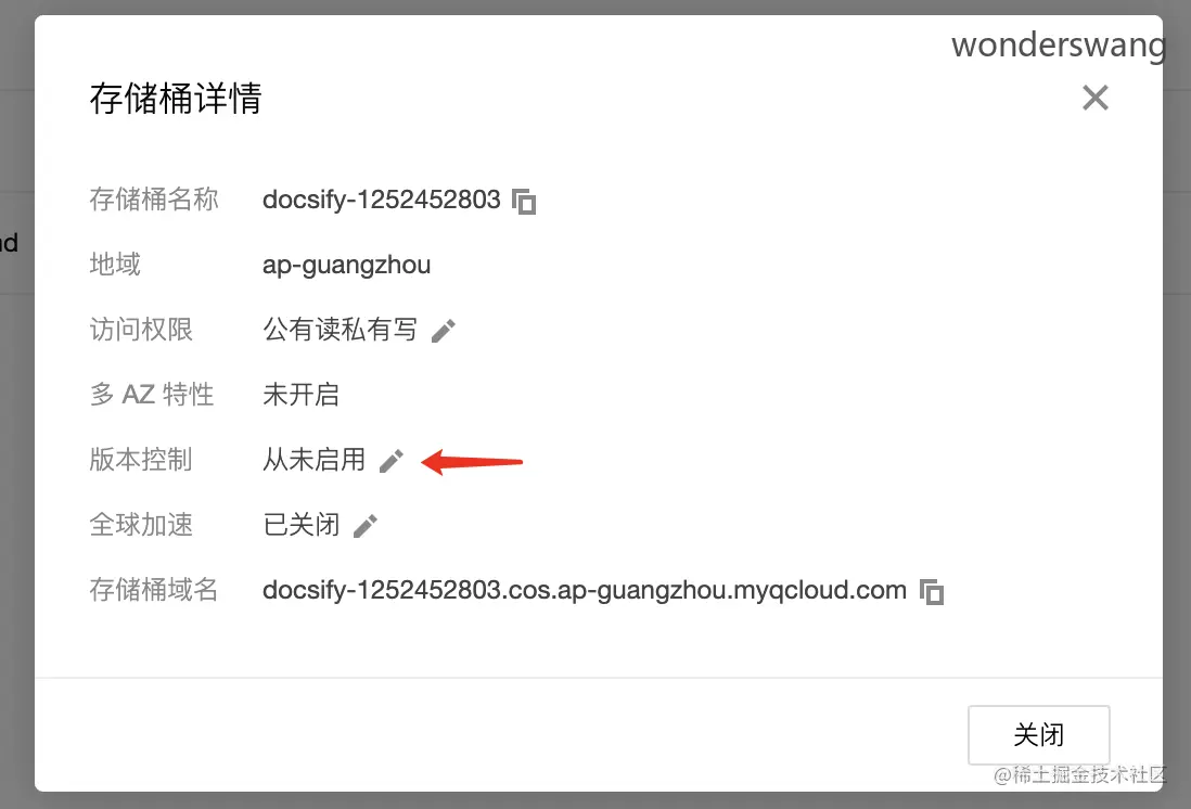 首先,你要在对象存储控制台创建一个存储桶。这里作为例子,我创建一个名为 docsify 的存储桶。地域可以就近选择,访问权限要选公有读私有写。