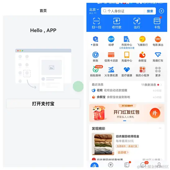 我们以安卓应用打开支付宝为例进行说明: