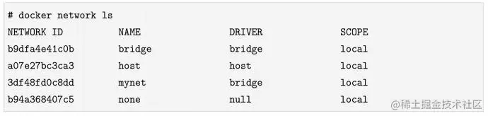 默认情况下,Docker Daemon会预创建3个网络,分别使用对应的网络模式作为网络名称,即上面列出的bridge、host和null(对应none模式)。