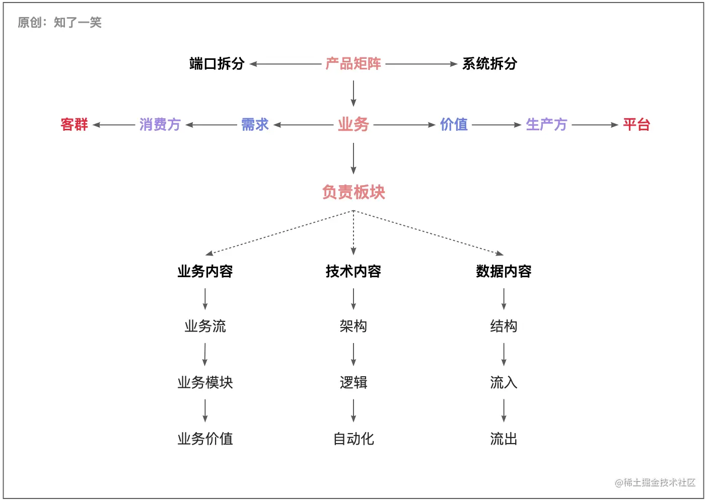 业务的运转流程,围绕客户、产品、组织协作来设计,侧重于场景的分析;