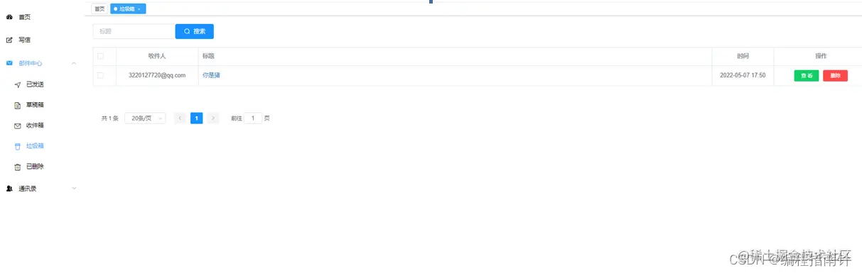 根据用户的id查询垃圾箱邮件,并且可以对该邮件进行继续编辑、删除和发送。