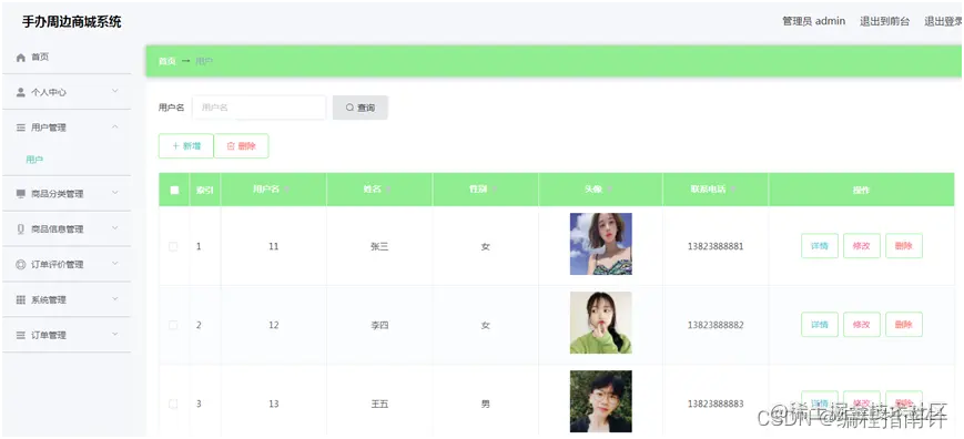 (5)用户管理模块:管理员可以对普通用户信息进行相应的增删改查操作。
