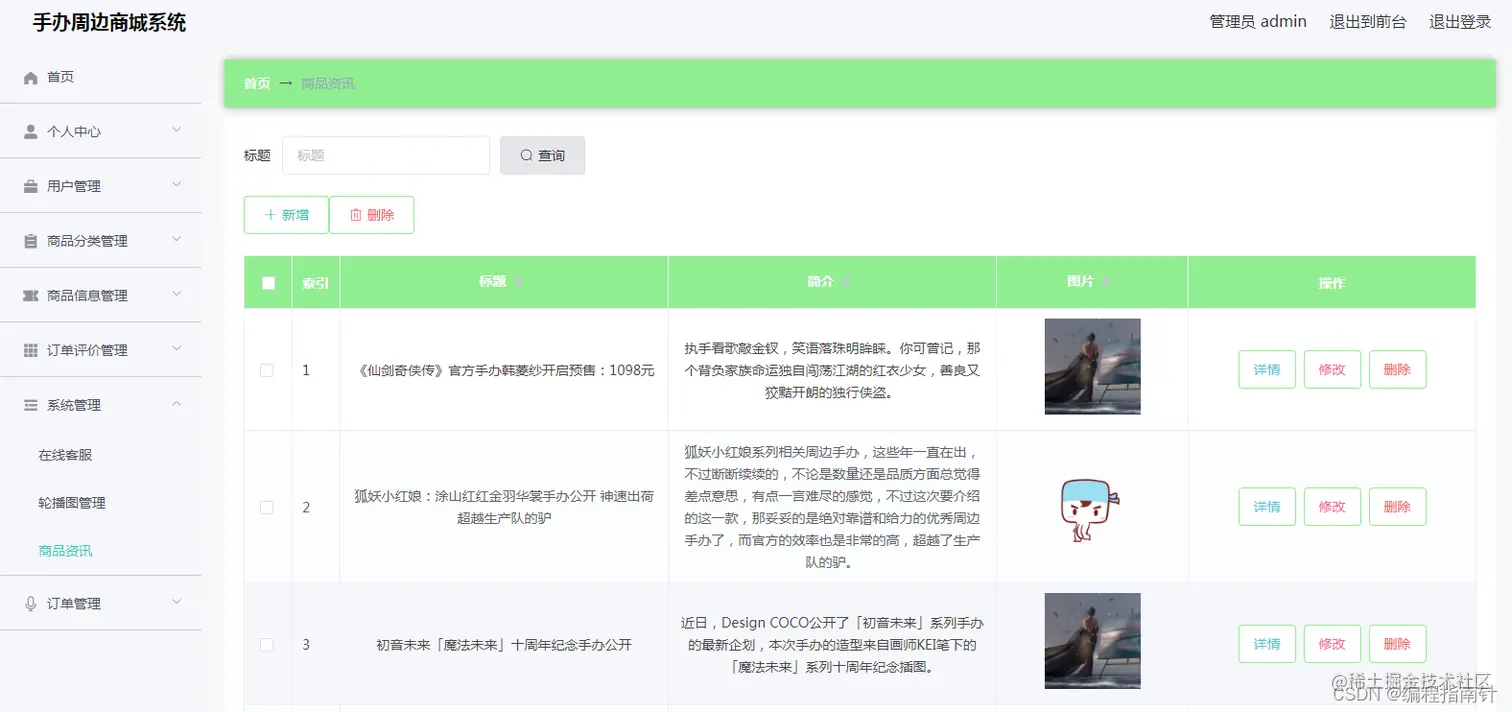 (6)手办资讯管理:管理员可以对商品资讯进行相应的增删改查操作,向用户进行商品推荐。
