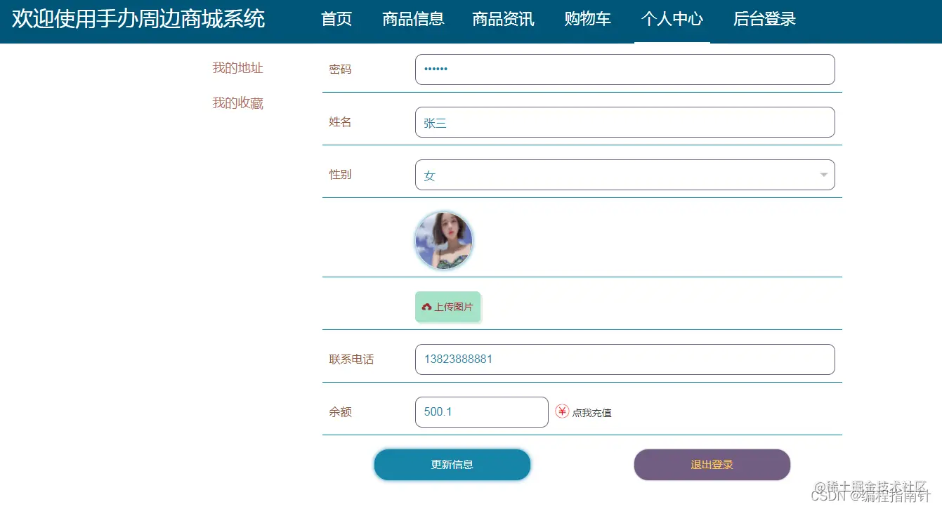 (1)用户功能模块:用户可以进行登录注册与注销操作,并且可以对个人信息进行响应的修改。