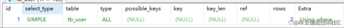explain select * from tb_user where addr = '北京'