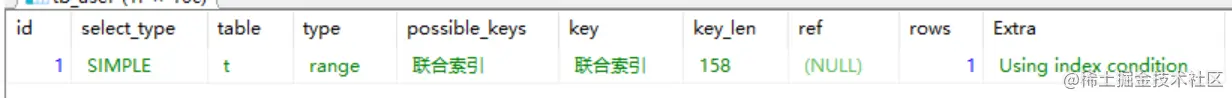 7.key_len:表示查询优化器使用了索引的字节数,这个字段可以评估组合索引是否完全被使用,这也是
