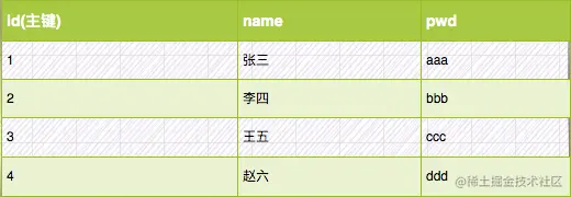 假设有张用户表,这张表的 id 是主键。表中一开始有4条数据。