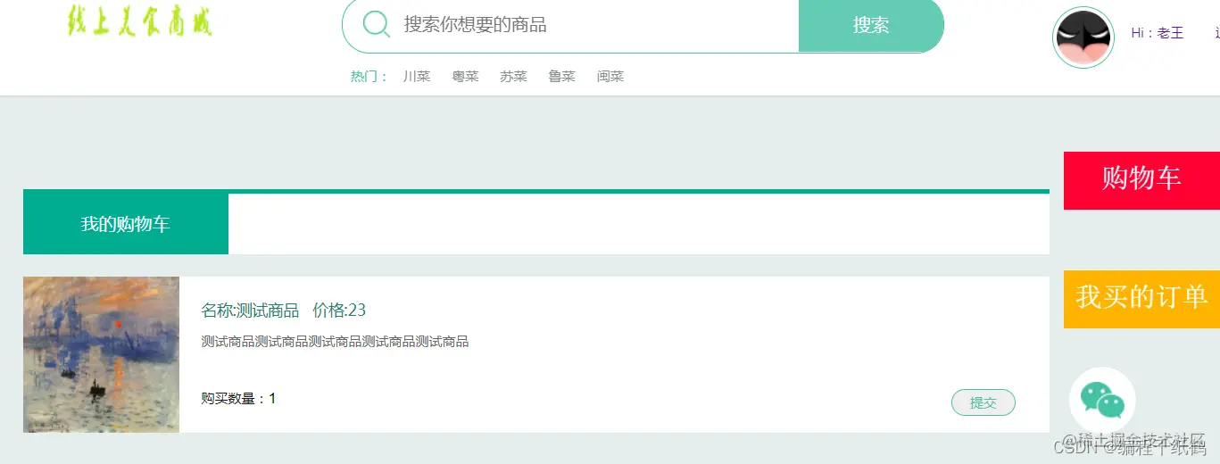 买方用户需要注册登陆后方可进行相应的操作,主要包含餐品分类浏览,详情查看,加入购物车,联系商家,查看自己的订单等功能,也可对餐品进行相应评论操作。