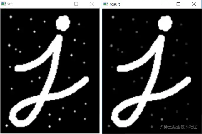 dst = cv2.morphologyEx(src, cv2.MORPH_OPEN, kernel)