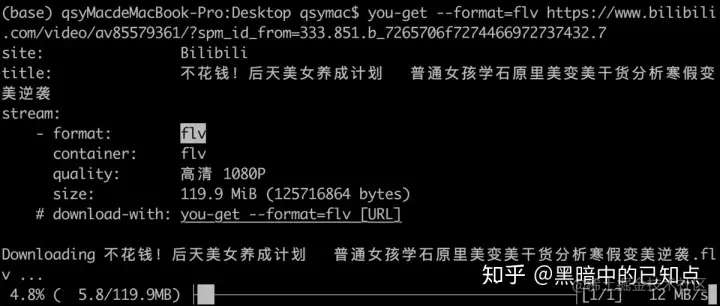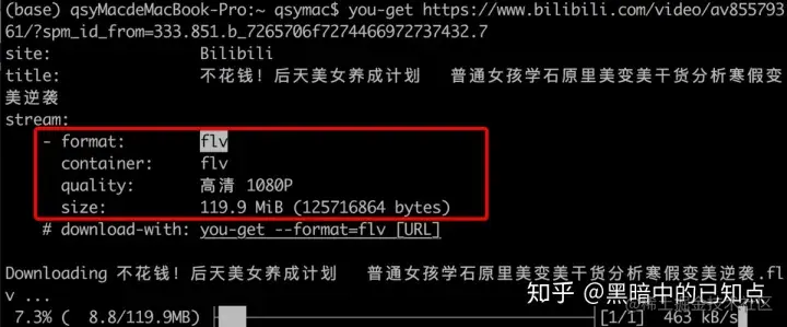 在命令行工具中输入 “you-get 视频链接”点“enter”键就可以下载了,即: