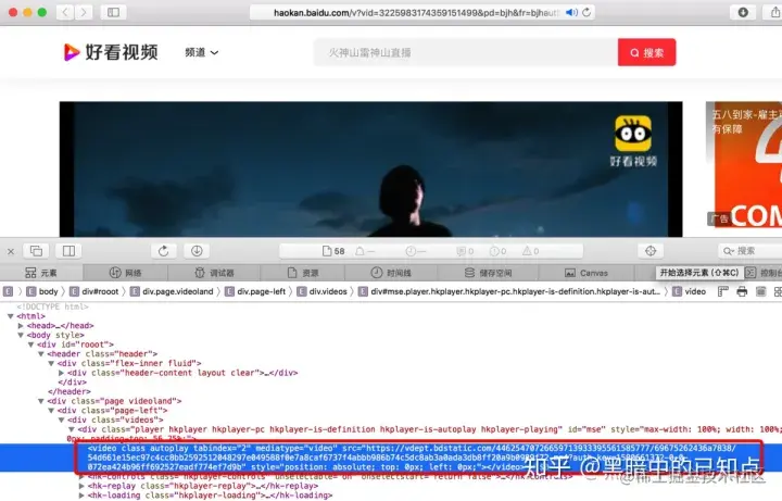 在打开的网页上,右键,检查元素,然后查看html元素,定位到MV视频的元素,就会显示如下图蓝底红色框中的内容: