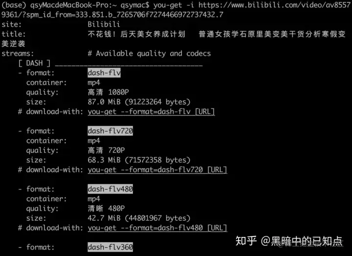 当然,也可以查看当前视频的所有格式、清晰度列表: