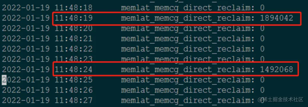 从测试数据来看,每次直接回收的延时,都会对应一次 redis 的抖动。