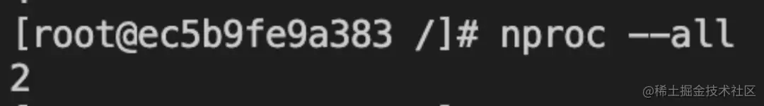 开启 CgroupFS 后,在容器中执行常用命令的效果:(容器规格:2 CPU,限定可用内存 512M,可用内存和可用 swap 总计 1G)容器内 proc 文件系统下显示 CPU 信息: