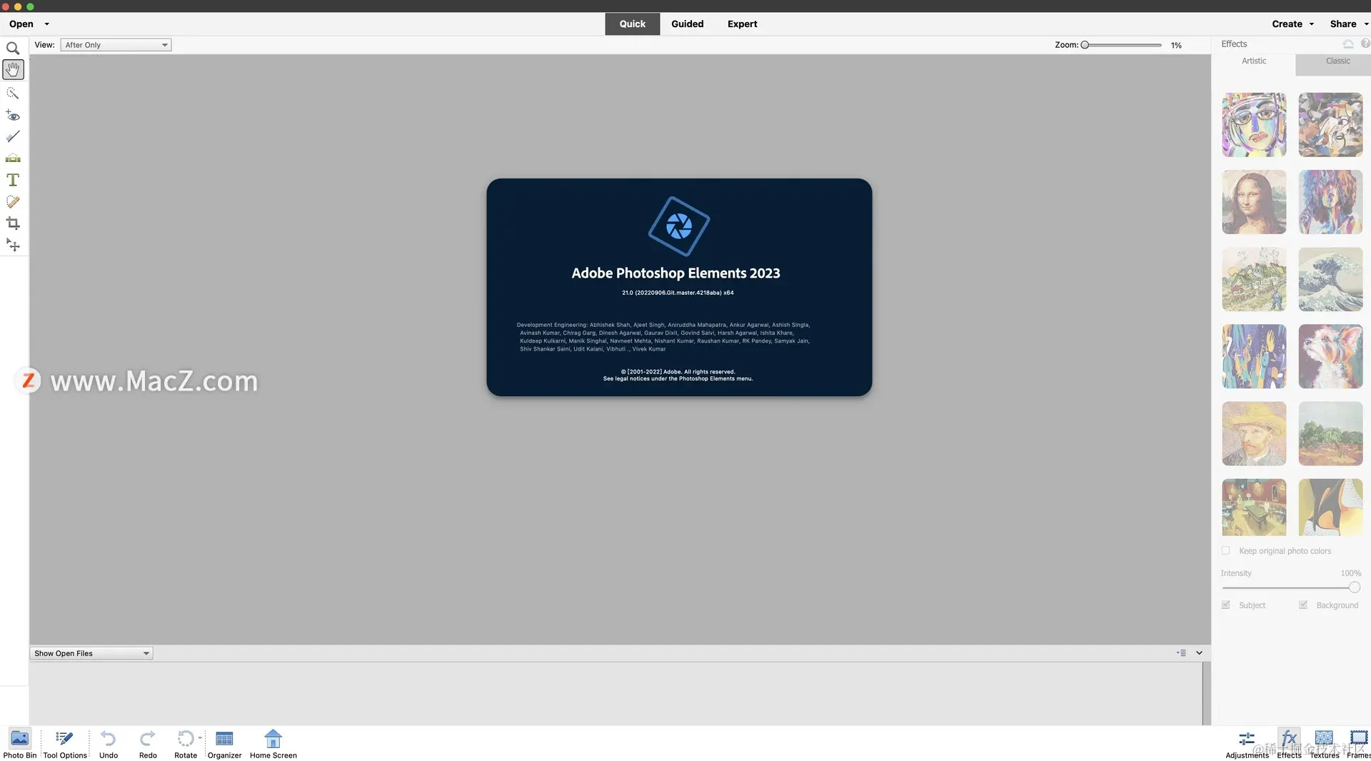 Photoshop Elements 2023是创建照片风格的最简单的软件,内含有多种模版,让您创造出令人难以置信的照片,使用自动生成的作品和智能编辑选项,将您最好的照片展示出来。