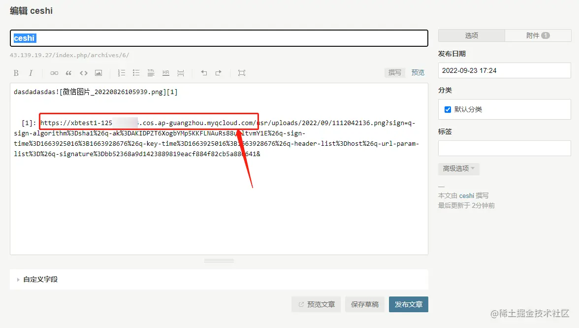 完成以上设置后,即可完成博客系统的搭建,上传图片即可显示该腾讯云COS 的存储桶域名。