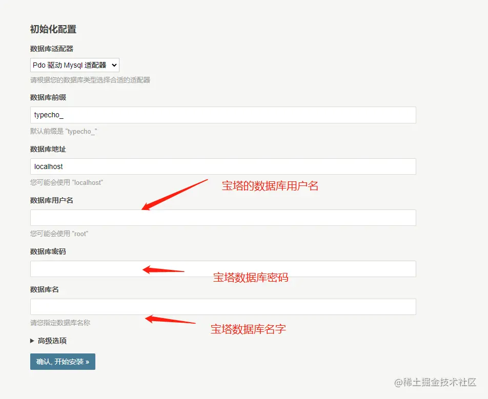 - 若提示上传目录无法写入等报错,则需要重新去 Typecho 官网下载最新安装包。