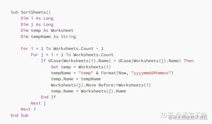接下来让我们尝试使用 VBA 创建一个简单的宏,按 tab 名对 sheet 进行排序。