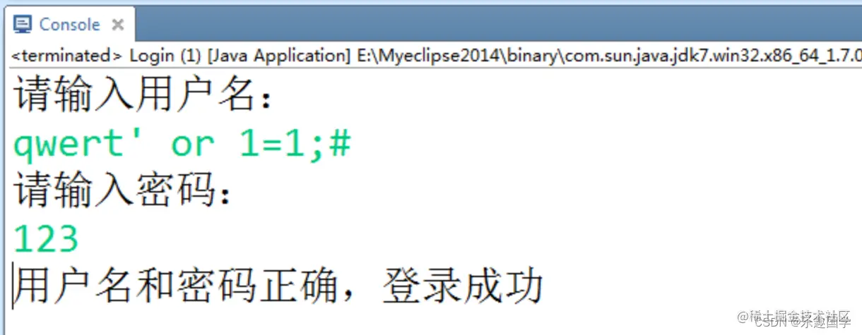 输入错误的用户名和密码,提示登录成功:产生了SQL注入