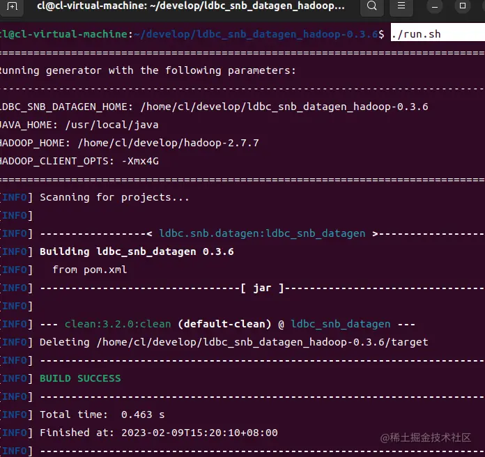 回到ldbc_snb_datagen_hadoop-0.3.6目录,运行run.sh
