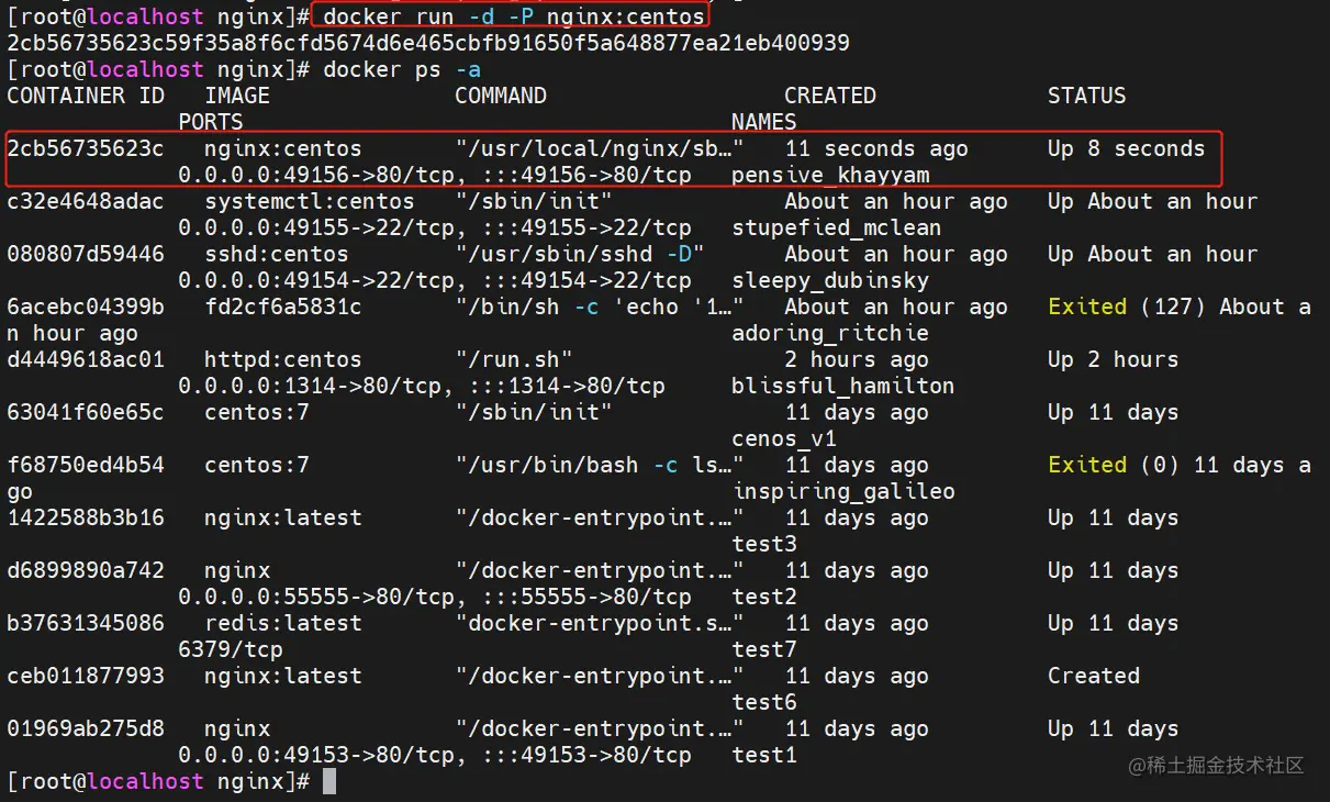 docker run -d -P nginx:centos