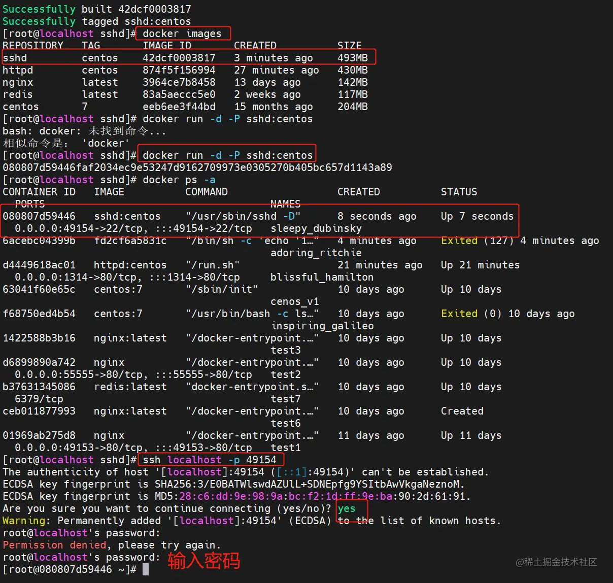 docker build -t sshd:centos .