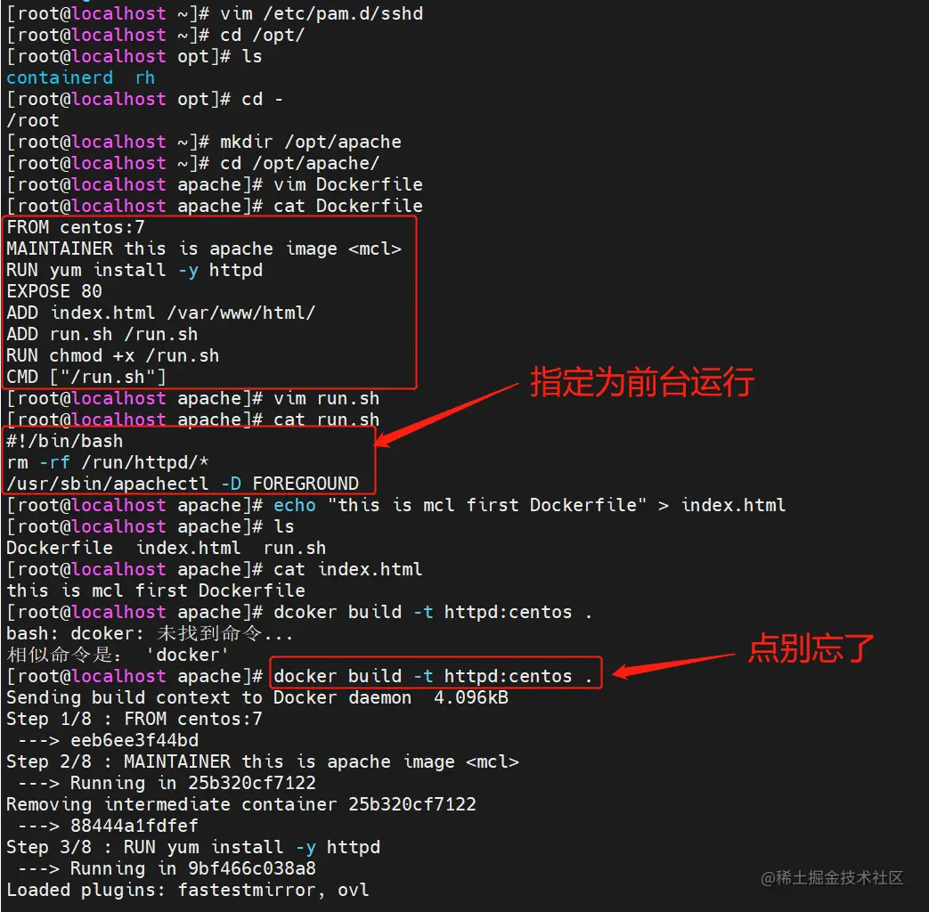 docker build -t httpd:centos7 . #注意!!!末尾的“.”不要忘记