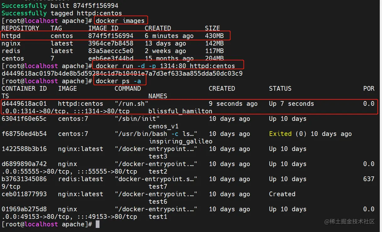 docker run -d -p 1314:80 httpd:centos7 #大写P随机端口,小写P指定端口