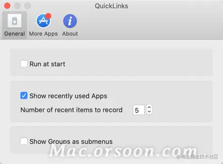 快速连接在系统菜单栏中:单击系统菜单栏中的“快速链接”菜单将显示一个包含您喜欢的应用程序,文件夹,文件的菜单。这个小的快捷图标可以让您节省使用Mac电脑的时间和精力