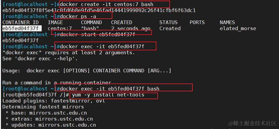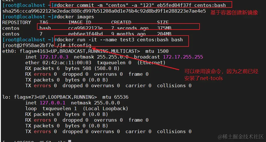 yum install net-tools -y # 可以在容器里面安装net-tools工具