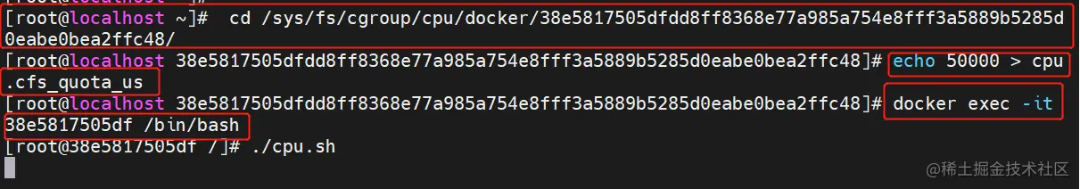 cd /sys/fs/cgroup/cpu/docker/38e5817505dfdd8ff8368e77a985a754e8fff3a5889b5285d0eabe0bea2ffc48/