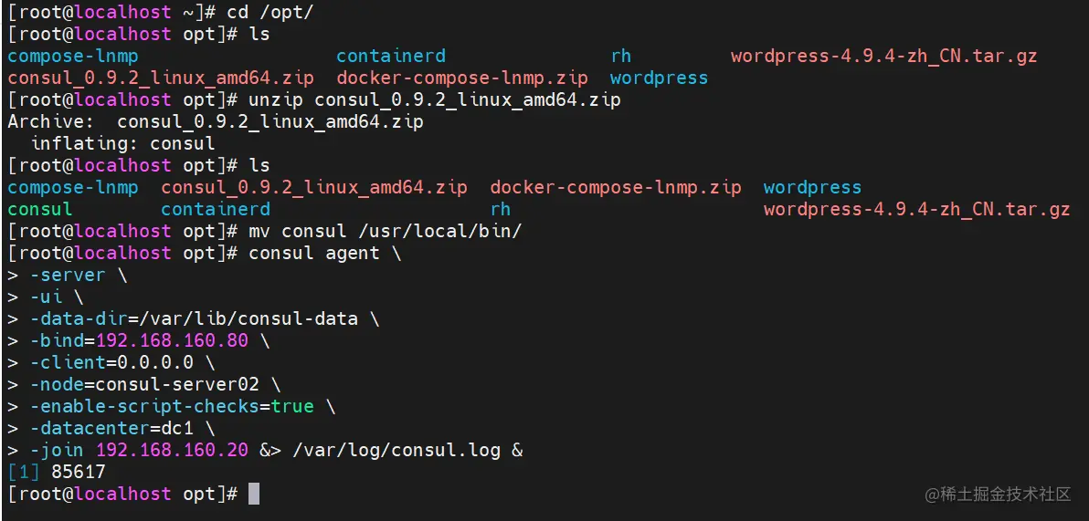 cp consul_0.9.2_linux_amd64.zip /opt/consul